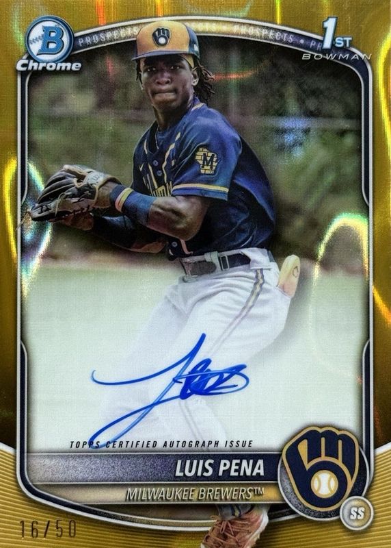Best Prices Available For Sale of Luis Pena 2025 Bowman #CPA-LP Chrome Prospect Auto - Gold Lava Refractor /50 (1st)