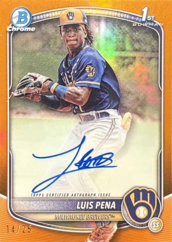 2025 Bowman Luis Pena Chrome Auto Orange Refractor 1st #14/25 Brewers