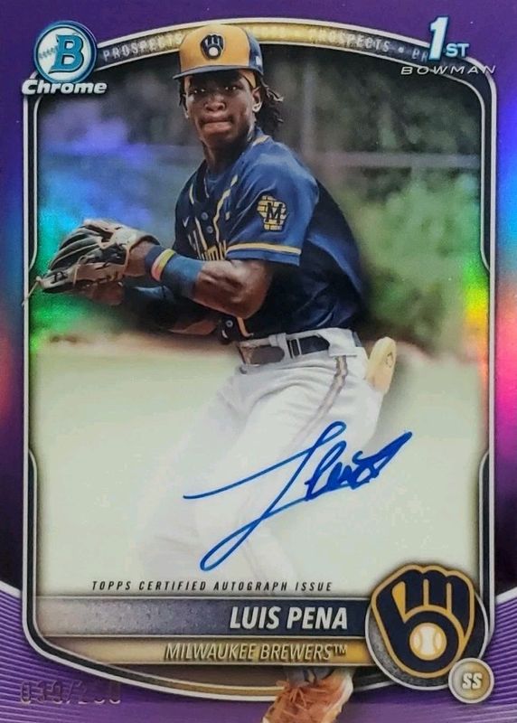 2025 Bowman Luis Pena Chrome Auto Purple Refractor 1st Prospect #227/250 Brewers