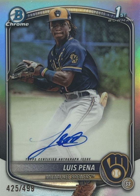 2025 Bowman Chrome Luis Pena 1st Refractor Auto /499 CPA-LP Brewers
