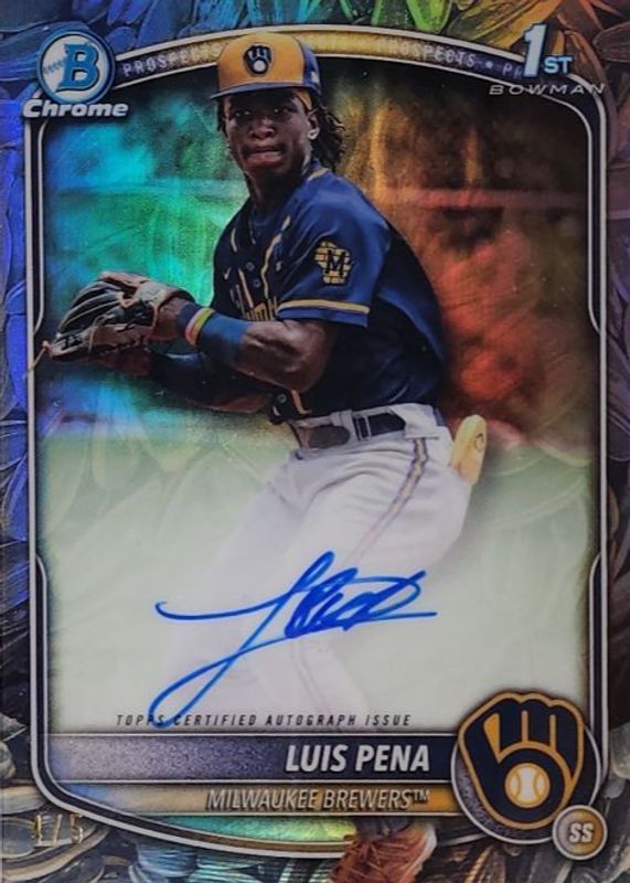 Luis Pena 2025 Bowman #CPA-LP Chrome Prospect Auto - Sunflower Refractor /5 (1st) RAW Price Guide