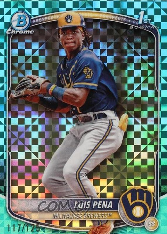 2025 Bowman Luis Pena Chrome Aqua X-Fractor 1st Bowman 17/125 Brewers