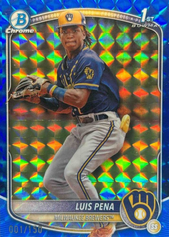 2025 BOWMAN LUIS PENA CHROME BLUE GEOMETRIC REFRACTOR 87/150 1ST BOWMAN BREWERS