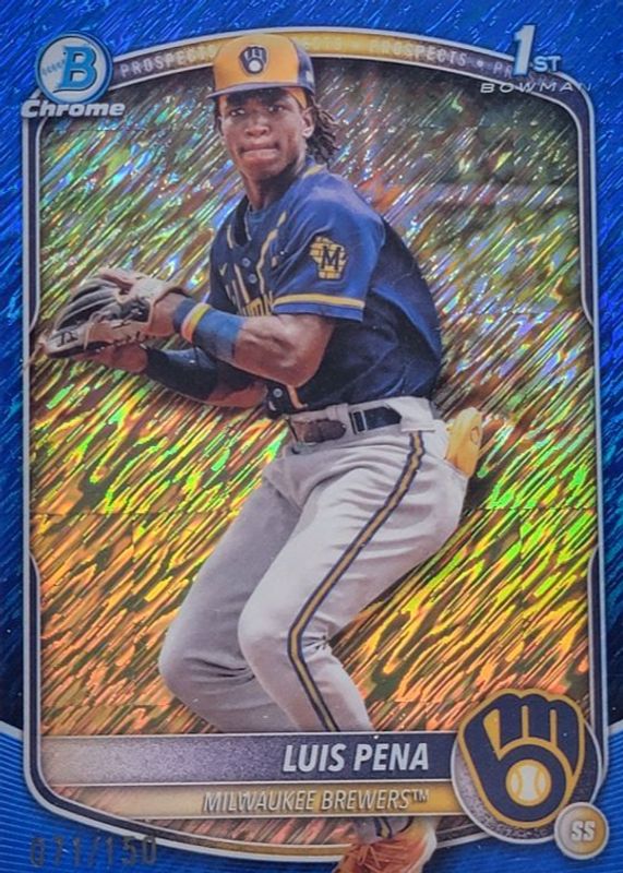 2025 Bowman Chrome 1st Luis Pena Blue Shimmer Refractor 46/150 Brewers SP🔥🔥📈