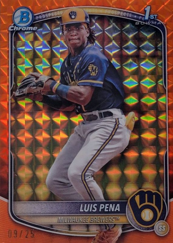 Luis Pena 2025 Bowman #BCP-38 Chrome Prospects - Orange Geometric Refractor /25 (1st) RAW Price Guide