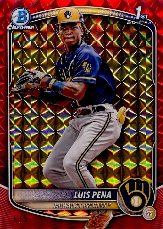 2025 Bowman Chrome 1st Prospects Luis Pena Red Geometric Refractor 5/5 Brewers