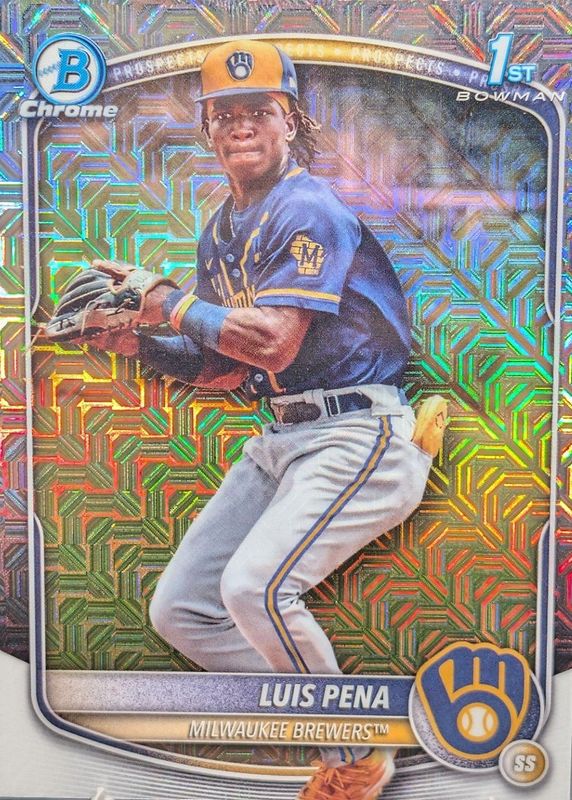 2025 Bowman Mega Box LUIS PENA Chrome Mojo Refractor 1st Prospect Card Brewers