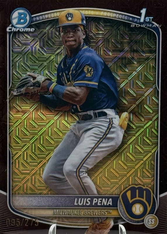 2025 Bowman 1st Chrome Luis Pena Mega Burgundy Mojo Refractor /275 Brewers