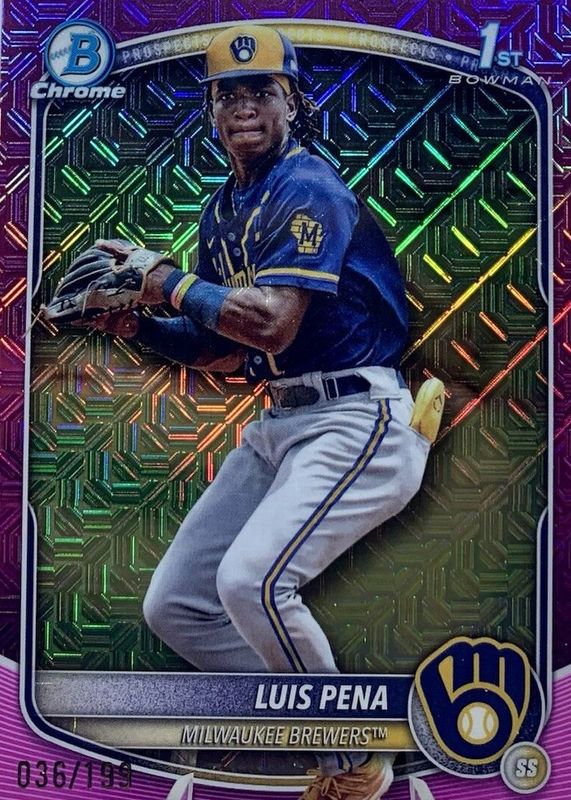 2025 Bowman Luis Pena Chrome Mega Box Pink Refractor 1st #/199 Brewers