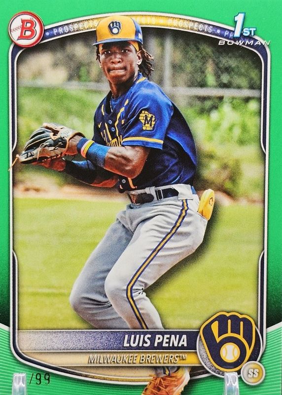 2025 Bowman Luis Pena 1st Bowman Green /99 Brewers SS Prospect