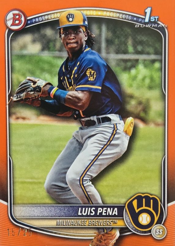 Luis Pena 2025 Bowman Orange 1st Bowman #15/25 #BP-38 Brewers