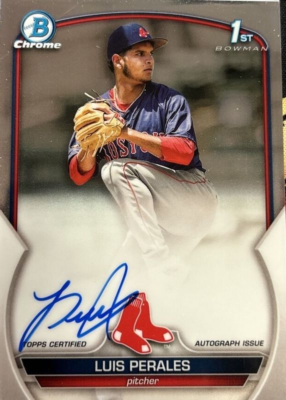 The Luis Perales 2023 Bowman Chrome #CPA-LP Prospect Auto (1st) card in Raw condition has moved down -$7.22 (-31.8%) in the last 30 days and was last sold for $15.50 .