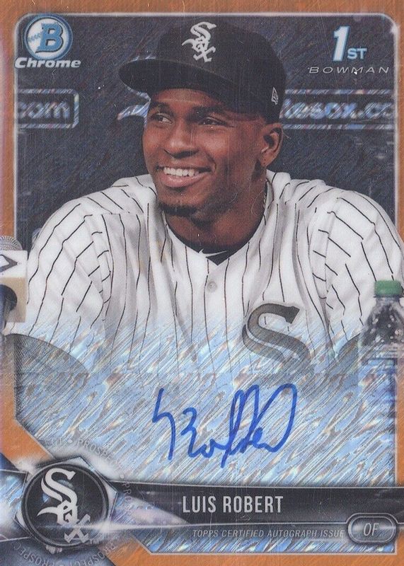Best Prices Available For Sale of Luis Robert Jr. 2018 Bowman #CPA-LR Chrome Prospect Auto - Orange Shimmer Refractor /25 (1st)