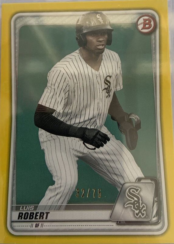 The Luis Robert Jr. 2020 Bowman #BP-150 Paper Prospects - Yellow /75 Rookie card in Raw condition has not changed in price in the last 30 days and was last sold for $54.00 .