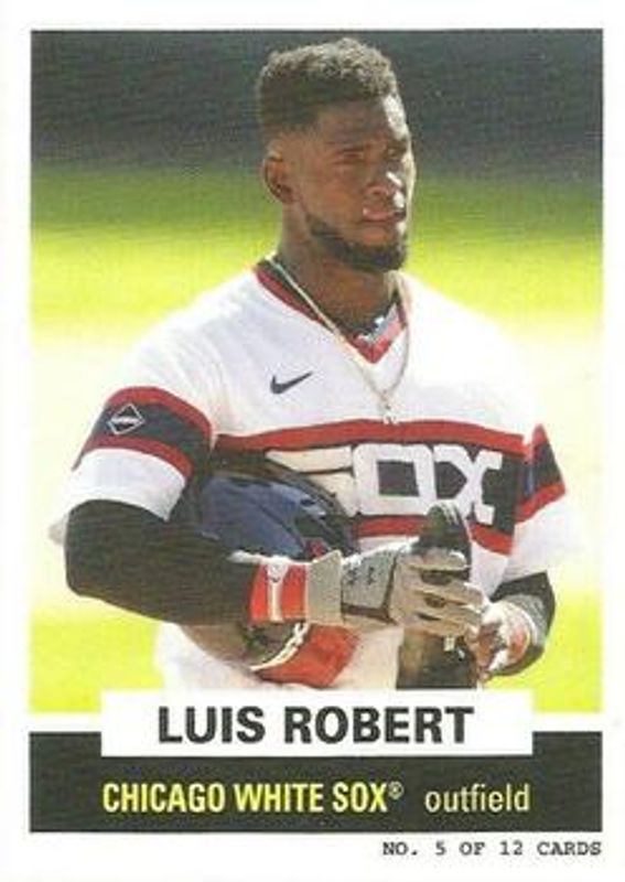 The Luis Robert Jr. 2021 Topps Throwback Thursday #5b Base card is 1 of 9 Luis Robert Jr.'s card variations in the 2021 Topps Throwback Thursday set being tracked by Sports Card Investor, including #124 Base, #5 Base, #124 Blue, #5 Blue, and #5 Gold.