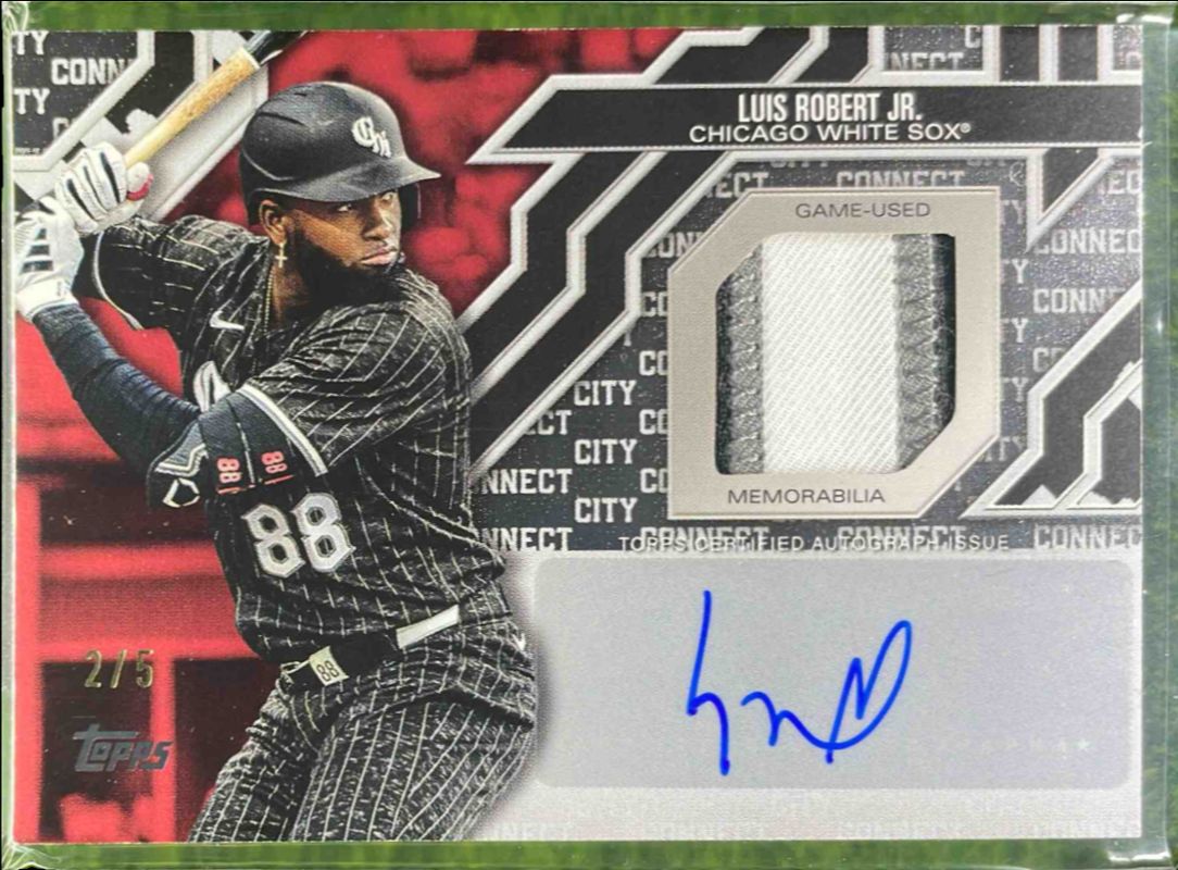 Luis Robert Jr. 2025 Topps #CCA2-LR City Connect Swatch Collection Autographs Relic (Series Two) - Red /5 RAW Price Guide