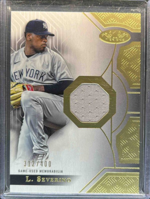 The Luis Severino 2023 Topps Tier One #T1R-LS Tier One Relics (Design B) /400 card is 1 of 3 Luis Severino's card variations in the 2023 Topps Tier One set being tracked by Sports Card Investor, including Tier One Relics (Design B) Dual - Patch /25, and Tier One Relics (Design B) Triple - Patch /1.
