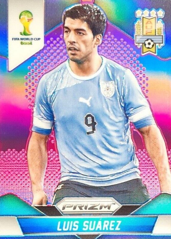 This card is 1 of 13 Luis Suarez's card variations in the 2014 Prizm World Cup set being tracked by Sports Card Investor, including Base, Blue & Red Wave, Red White Blue Power Plaid, Silver, and Yellow & Red Pulsar.