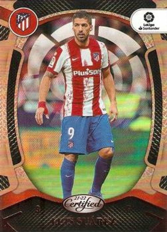 The Luis Suarez 2021 Chronicles #144 Certified La Liga card is 1 of 60 Luis Suarez's card variations in the 2021 Chronicles set being tracked by Sports Card Investor, including Absolute La Liga, Absolute La Liga - Gold Laser, Absolute La Liga Purple - Astro, Absolute La Liga - Red Laser, and Absolute La Liga - Silver.