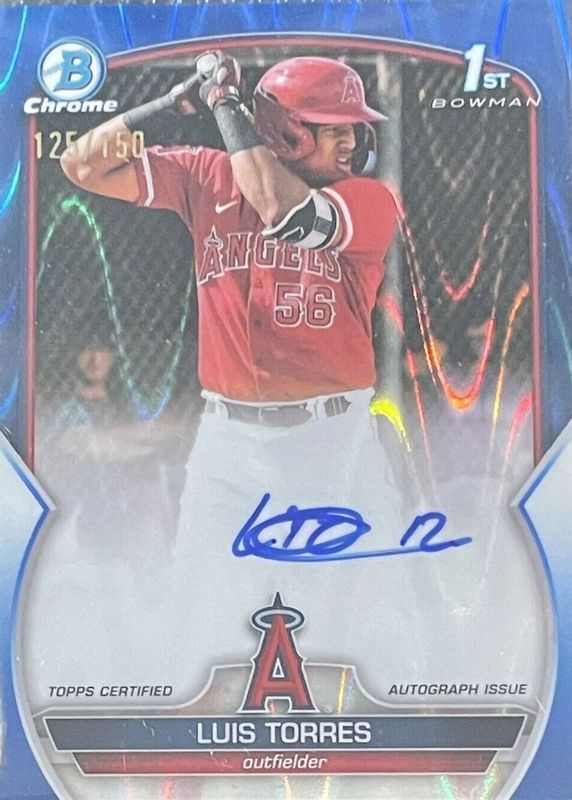 2023 Bowman Chrome #CPA-LT Luis Torres 1st Blue Raywave Auto #/150 Anaheim