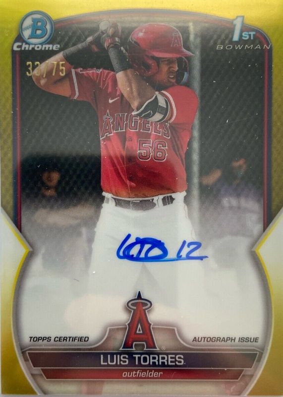 2023 Luis Torres 1st Bowman Chrome Auto True Yellow Refractor /75 LA Angels
