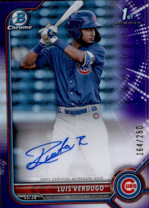 2022 Bowman Chrome Luis Verdugo Bowman 1st Purple Refractor Auto /250 Cubs