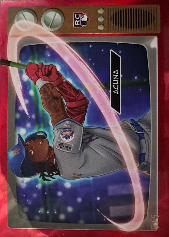 The Luisangel Acuna 2025 Bowman #BA-26 Anime - Red Refractor /5 Rookie card in Raw condition has not changed in price in the last 30 days and was last sold for $1,125.00 .