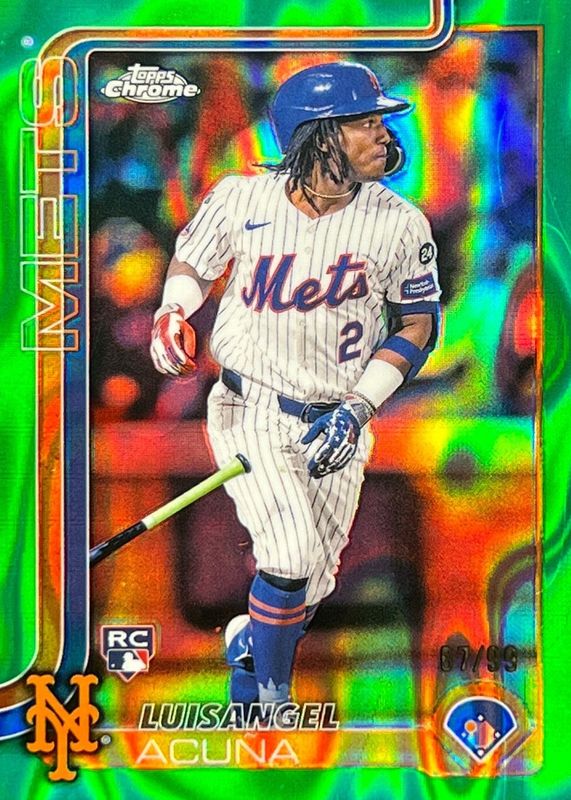 2025 Topps Chrome Baseball 56 Luisangel Acuna RC Green Lava Refractor /99 Mets