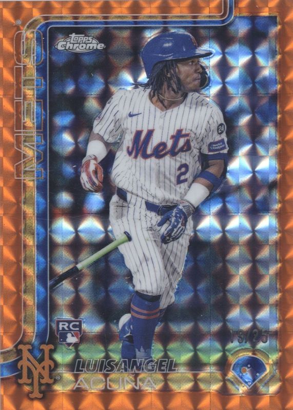Luisangel Acuna 2025 Topps Chrome #56 Orange Geometric Refractor /25 Rookie RAW Price Guide