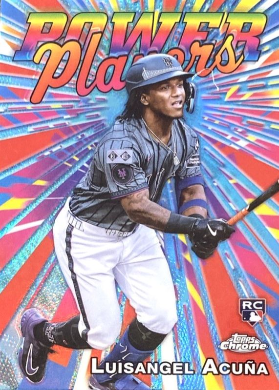 The Luisangel Acuna 2025 Topps Chrome #PP-24 Power Players Rookie card in Raw condition has moved down -$0.50 (-25.0%) in the last 30 days and was last sold for $1.50 .