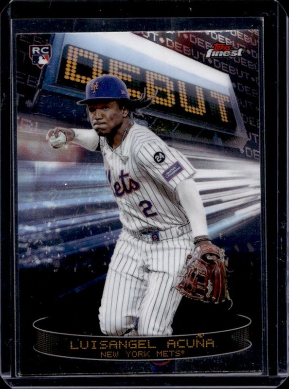 The Luisangel Acuna 2025 Topps Finest #D-20 Debut Rookie card is 1 of 164 Luisangel Acuna's card variations in the 2025 Topps Finest set being tracked by Sports Card Investor, including Common, Rare, Uncommon, Common - Checkerboard Refractor, and Common - Refractor.
