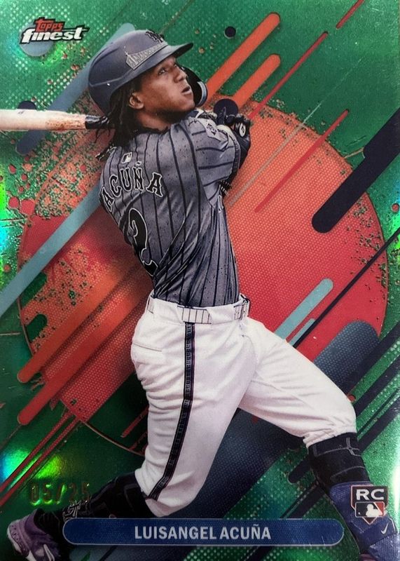 The Luisangel Acuna 2025 Topps Finest #211 Rare - Green Refractor /25 Rookie card in Raw condition has not changed in price in the last 30 days and was last sold for $19.99 .