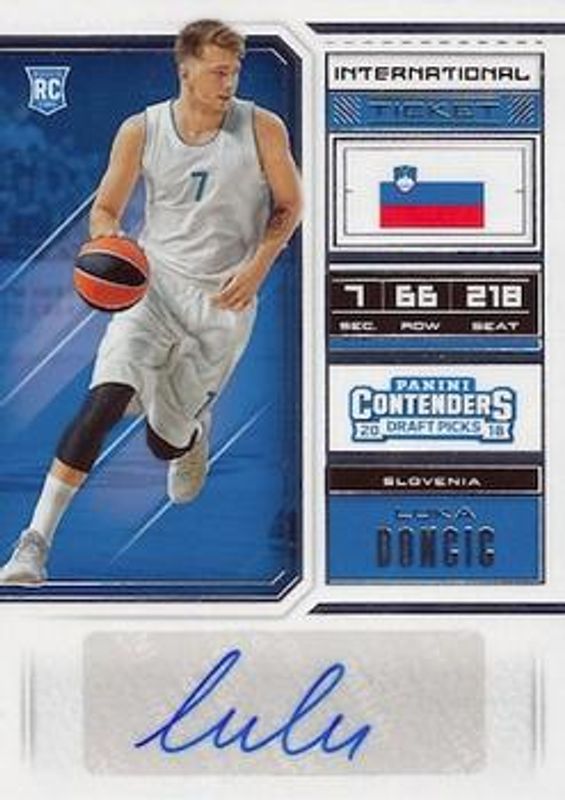 The Luka Doncic 2018 Contenders Draft Picks #126 Base Rookie card is 1 of 12 Luka Doncic's card variations in the 2018 Contenders Draft Picks set being tracked by Sports Card Investor, including International Ticket Auto, Blue Foil, Red Foil, Draft Ticket /99, and Cracked Ice /23.
