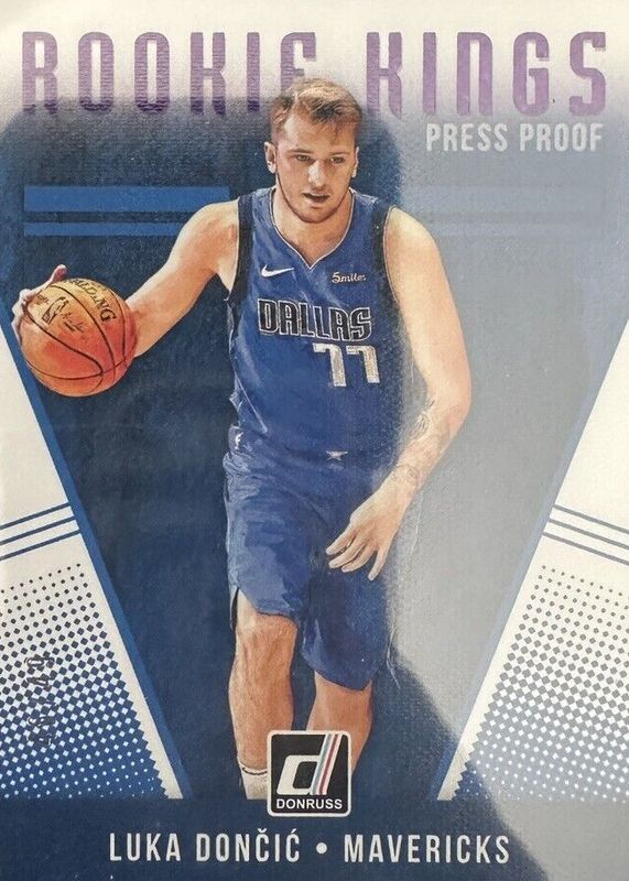 The Luka Doncic 2018 Donruss #20 Rookie Kings - Press Proof Purple /49 card in Raw condition has not changed in price in the last 30 days and was last sold for $99.99 .