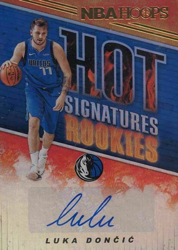 Luka Doncic Rookie Auto, 2018 NBA HOOPS Hot Signatures Rookies, Mavs Rookie Card