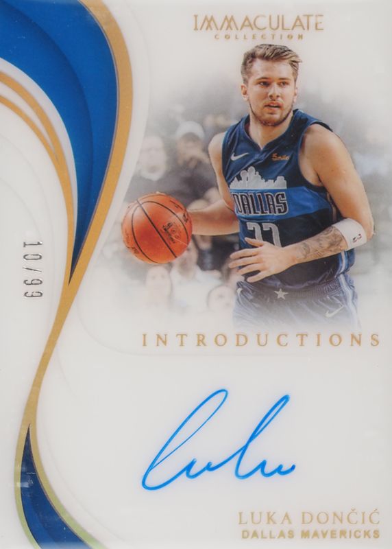 The Luka Doncic 2018 Immaculate #INT-LDC Immaculate Introductions Autographs (/99) Rookie card in Raw condition has not changed in price in the last 30 days and was last sold for $2,413.00 .
