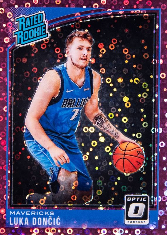 The Luka Doncic 2018 Optic #177 Fast Break Pink /20 Rookie card in Raw condition has not changed in price in the last 30 days and was last sold for $3,383.00 .