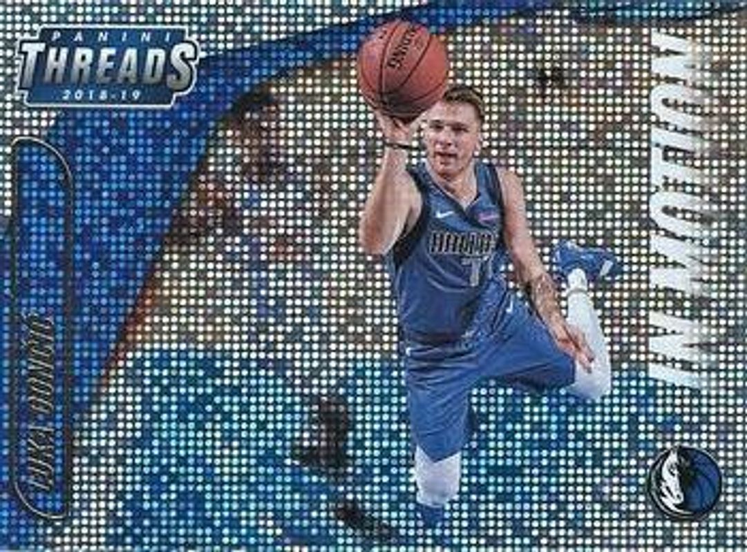 The Luka Doncic 2018 Threads #15 In Motion - Dazzle Rookie card is 1 of 49 Luka Doncic's card variations in the 2018 Threads set being tracked by Sports Card Investor, including #101 Base, #141 Base, #181 Base, #181 Dazzle, and #101 Dazzle.