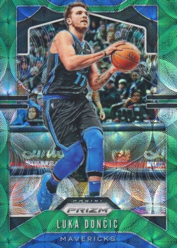 This card is 1 of 51 Luka Doncic's card variations in the 2019 Prizm set being tracked by Sports Card Investor, including Base, Choice Blue Yellow Green, Fanatics Green Ice, Fast Break, and FOTL Blue Shimmer.