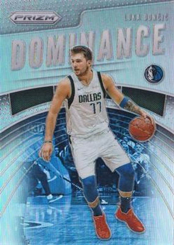 The Luka Doncic 2019 Prizm #20 Dominance - Silver card is 1 of 51 Luka Doncic's card variations in the 2019 Prizm set being tracked by Sports Card Investor, including Base, Choice Blue Yellow Green, Fanatics Green Ice, Fast Break, and FOTL Blue Shimmer.
