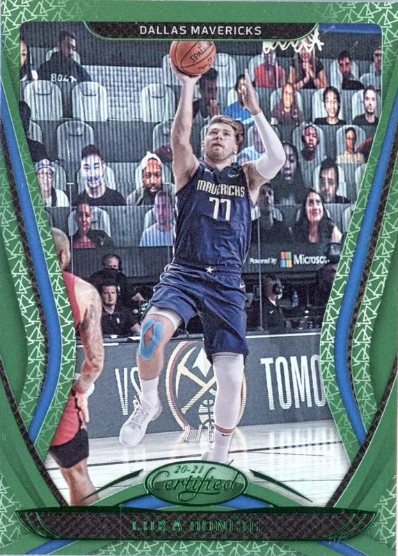 The Luka Doncic 2020 Certified #63 Mirror Green /5 card in Raw condition has not changed in price in the last 30 days and was last sold for $56.00 .
