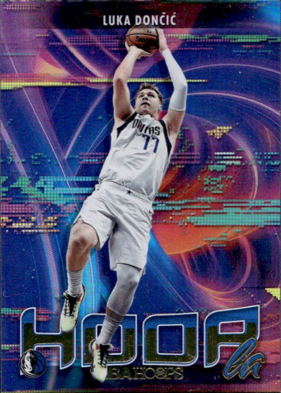 The Luka Doncic 2021 Hoops #5 Hoopla - Holo card is 1 of 84 Luka Doncic's card variations in the 2021 Hoops set being tracked by Sports Card Investor, including #251 Base, #62 Base, #62 Anniversary Edition, #62 Blue, and #62 Green Ice.