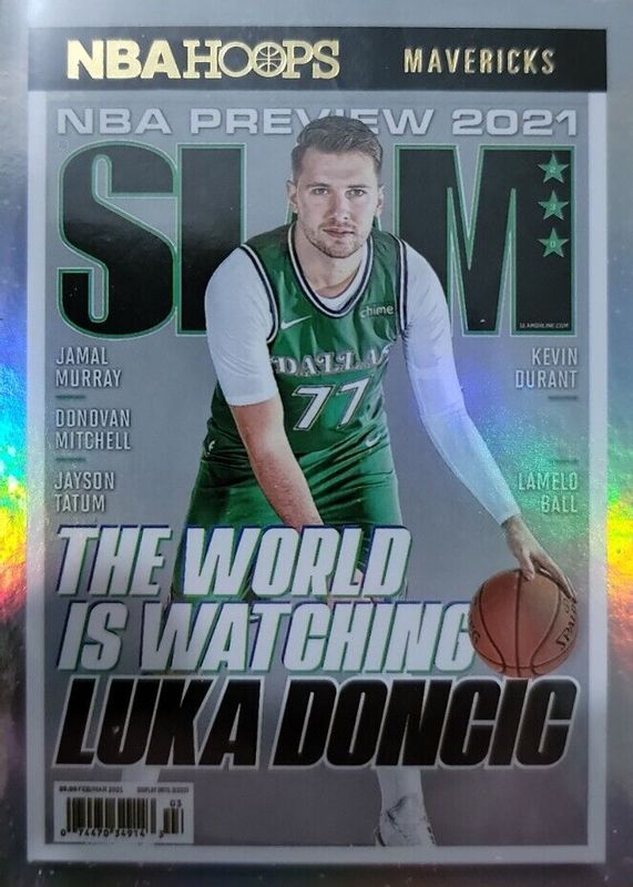 The Luka Doncic 2021 Hoops #230 SLAM - Holo card in Raw condition has moved up $4.50 (+29.0%) in the last 30 days and was last sold for $20.00 .