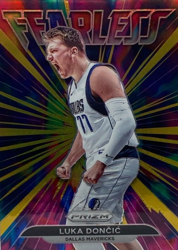 2021-22 Panini Prizm Fearless Luka Doncic Gold Prizm Insert Card #'d 04/10 Mavs