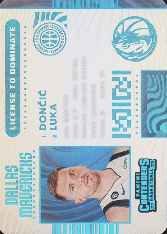 The Luka Doncic 2022 Contenders #20 License to Dominate /(SSP) card in Raw condition has not changed in price in the last 30 days and was last sold for $79.99 .