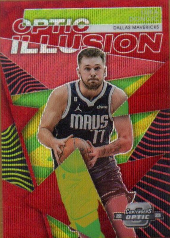 Auctions Ending Soon for Luka Doncic 2022 Contenders Optic #5 Optic Illusion - Red Wave RAW