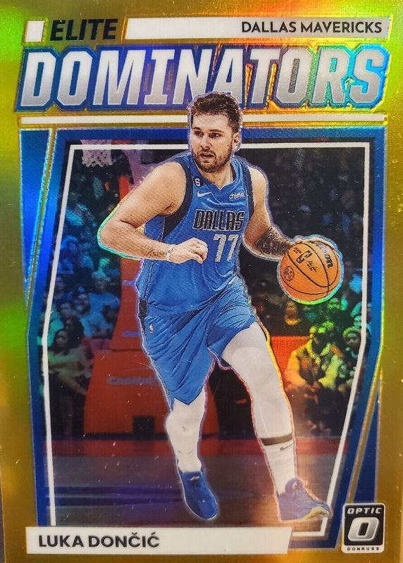 The Luka Doncic 2022 Optic #4 Elite Dominators - Gold /10 card in Raw condition has not changed in price in the last 30 days and was last sold for $123.60 .
