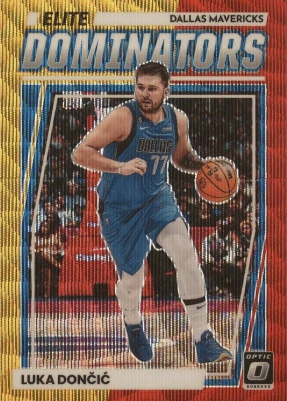 Luka Doncic 2022-23 Panini Donruss Optic Elite Dominators Red and Gold Wave /99