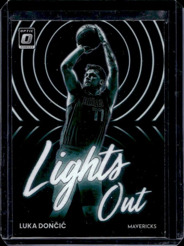 The Luka Doncic 2022 Optic #10 Lights Out card is 1 of 138 Luka Doncic's card variations in the 2022 Optic set being tracked by Sports Card Investor, including Base, Checkerboard, Choice Red & Green, Fast Break, and Green Shock.