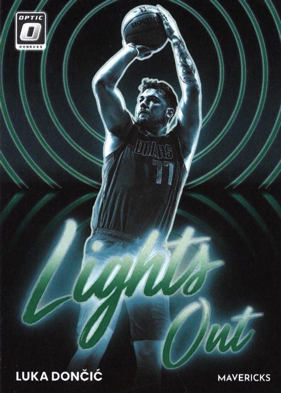 The Luka Doncic 2022 Optic #10 Lights Out - Green /5 card in Raw condition has not changed in price in the last 30 days and was last sold for $132.50 .